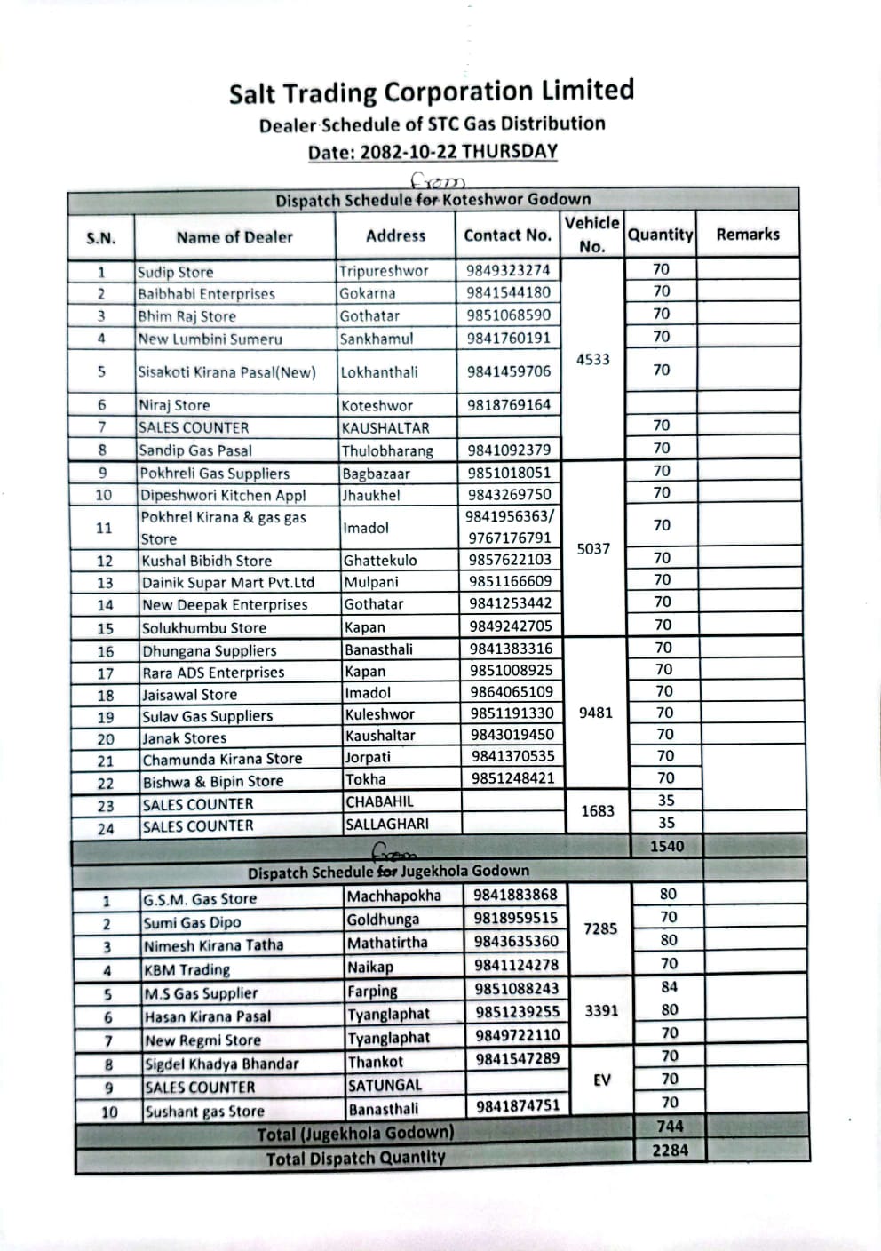 Besides salt, we also sell sugar, wheat, oil, rice, various other grains, tea, LP gas, paper, coal, tyre for vehicles and much more.