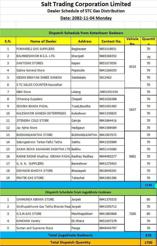 Besides salt, we also sell sugar, wheat, oil, rice, various other grains, tea, LP gas, paper, coal, tyre for vehicles and much more.