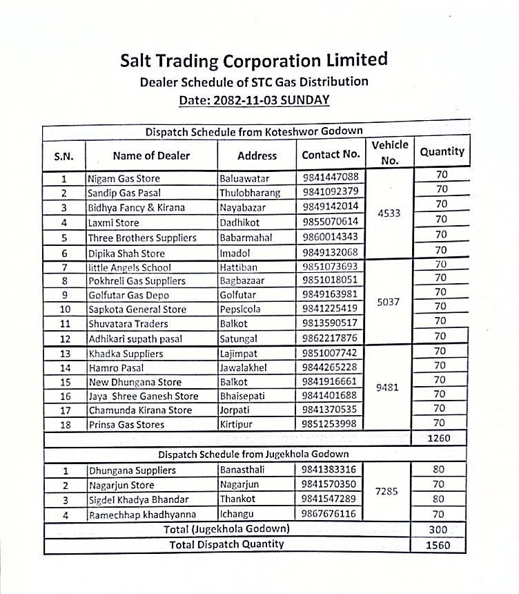 Besides salt, we also sell sugar, wheat, oil, rice, various other grains, tea, LP gas, paper, coal, tyre for vehicles and much more.