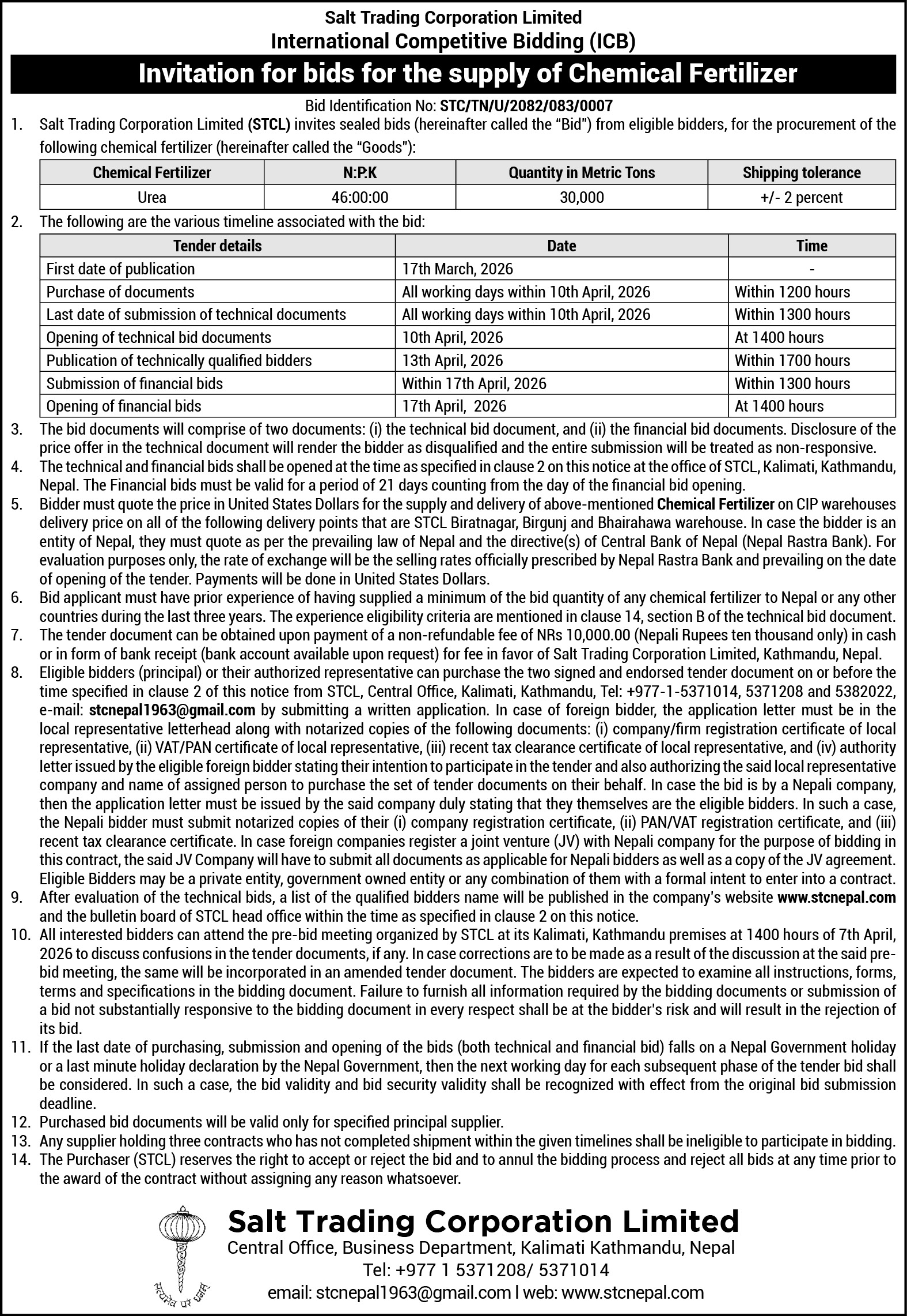 BID Chemical Fertilizers Urea